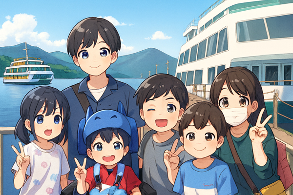 ▲7月、日帰り旅行で神奈川県箱根町の「生命の星地球博物館」へ行き、それから遊覧船に乗りました。博物館では、大きな剥製や標本に興味津々の子どもたち。お昼ご飯にランチビュッフェを食べ、遊覧船では景色のいい芦ノ湖を観て、のんびりした時間を過ごしました。
