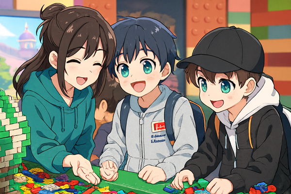 ▲小学生の日帰り旅行は葛西臨海水族園とレゴランドへ。たくさんのレゴに囲まれて大喜びでした。