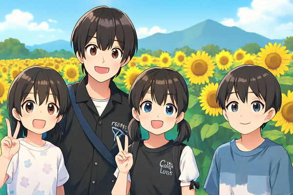 ▲8月、一泊旅行で山梨方面へ行きました。信玄餅詰め放題ではたくさん詰めることに奮闘!景色の良い公園では、ひまわり畑にうっとり。富士サファリパークでは車の中から超至近距離で観る動物に大興奮の子どもたちでした。(K・M)